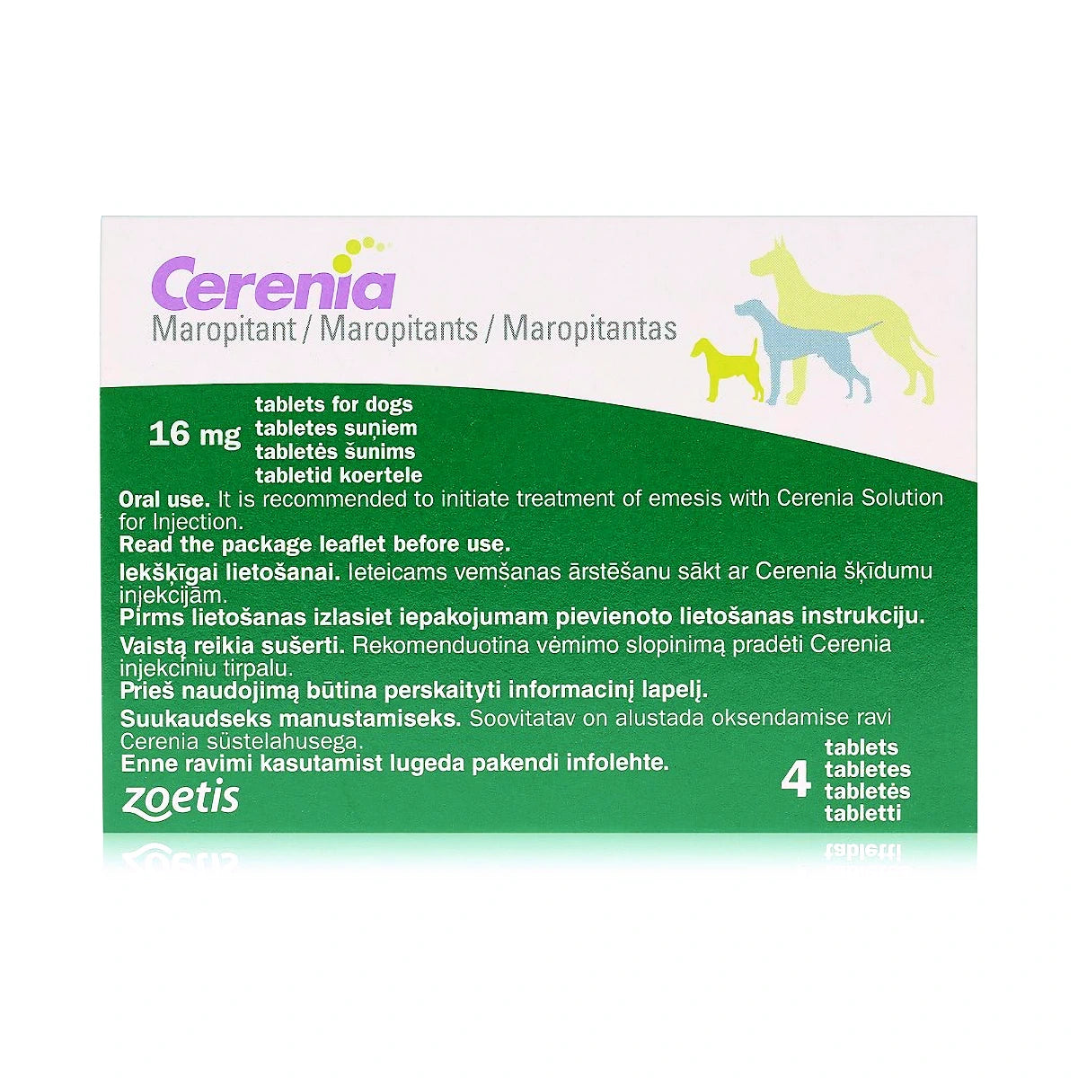 Cerenia® is available in four different tablet strengths, each packaged in blister packs containing 4 tablets: