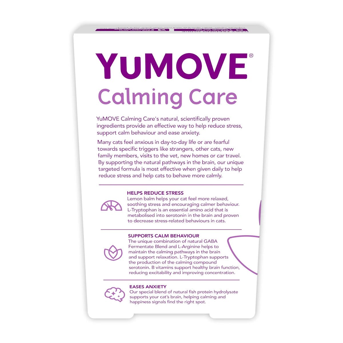 YuMOVE Calming Care for Adult Cats contains scientifically-backed ingredients to help alleviate anxiety and support calm behaviour. Use long-term for cats who feel anxious in day-to-day life, or short-term use for those fearful towards specific intermittent triggers.